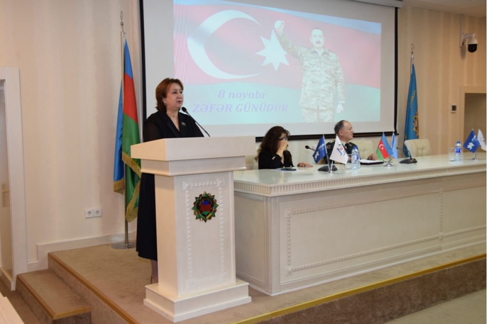 Tədbirdə çıxış edən millət vəkili Mehriban Vəliyeva ölkəmizin inkişafında, gülü ordunun formalaşmasında Ulu öndər Heydər Əliyev amilinə diqqət çəkib. Millət vəkili qeyd edib ki, məhz Ümummilli lider Heydər Əliyev tərəfindən əsası qoyulan milli inkişaf siyasəti, nizami ordunun formalaşdırılması sonrakı dönəmdə Prezidnt İlham Əliyev tərəfindən uğurla inkişaf etdirilmiş, nəticə etibarı ilə 8 Noyabr zəfərinin ortaya çıxmasını şərtləndirmişdir.