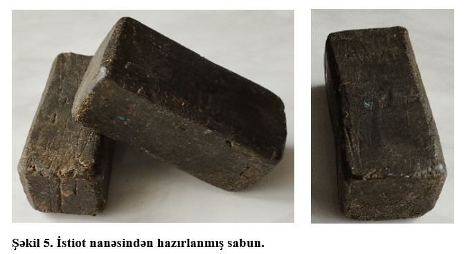 Aparılan tədqiqatda dərman bitkilərindən geniş yayılmış olanlardan kəklikotu ( lat.Thymus), istiot nanəsi – (Mentha piperita L), qoz (lat.Juglans) yarpağından sabunlar hazırlanmışdır. Sabunların dəriyə və saç köklərinə müalicəvi və kosmetik təsiri aşkar olunmuşdur. Bu bitkilərdən hazırlanmış sabunların mütəmadi istifadəsi zamanı dəri ləkələri təmizlənmiş və dəridəki yaraların sağalması müşahidə olunmuşdur. Eyni zamanda saç tökülməsinin qarşısı alınmış və yeni saçların da çıxması dəqiqləşdirilmişdir.