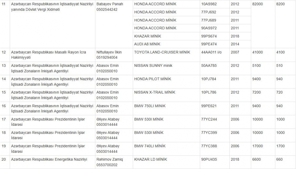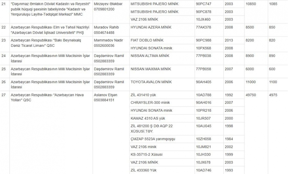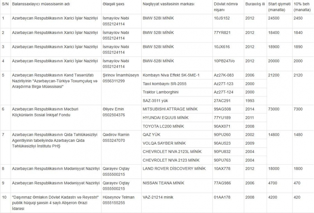 İqtisadiyyat Nazirliyi yanında Əmlak Məsələləri Dövlət Xidməti (ƏMDX) müxtəlif dövlət qurumlarına məxsus 27 nəqliyyat vasitəsini açıq hərraca çıxarır.