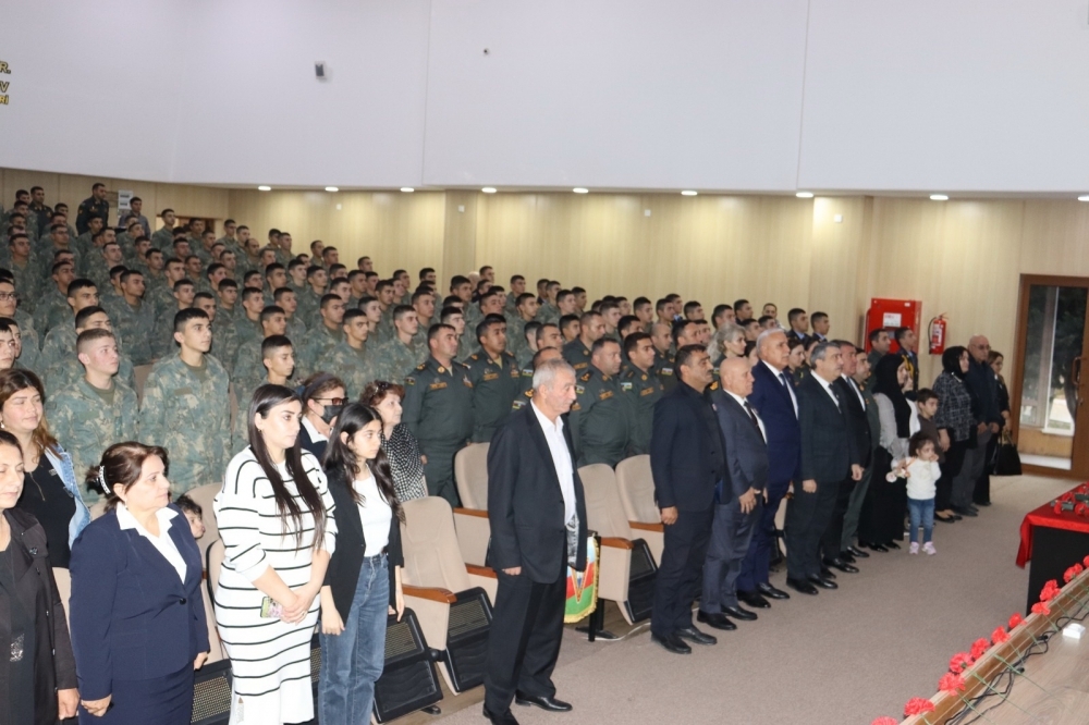Azərbaycan Respublikasının Dövlət Himni səsləndirildikdən sonra Ümummilli Lider Heydər Əliyevin və respublikamızın ərazi bütövlüyünün bərpa olunması, tarixi torpaqlarımızın işğaldan azad edilməsi uğrunda döyüşlərdə şəhid olan Vətən oğullarının xatirəsi bir dəqiqəlik sükutla yad edilib.