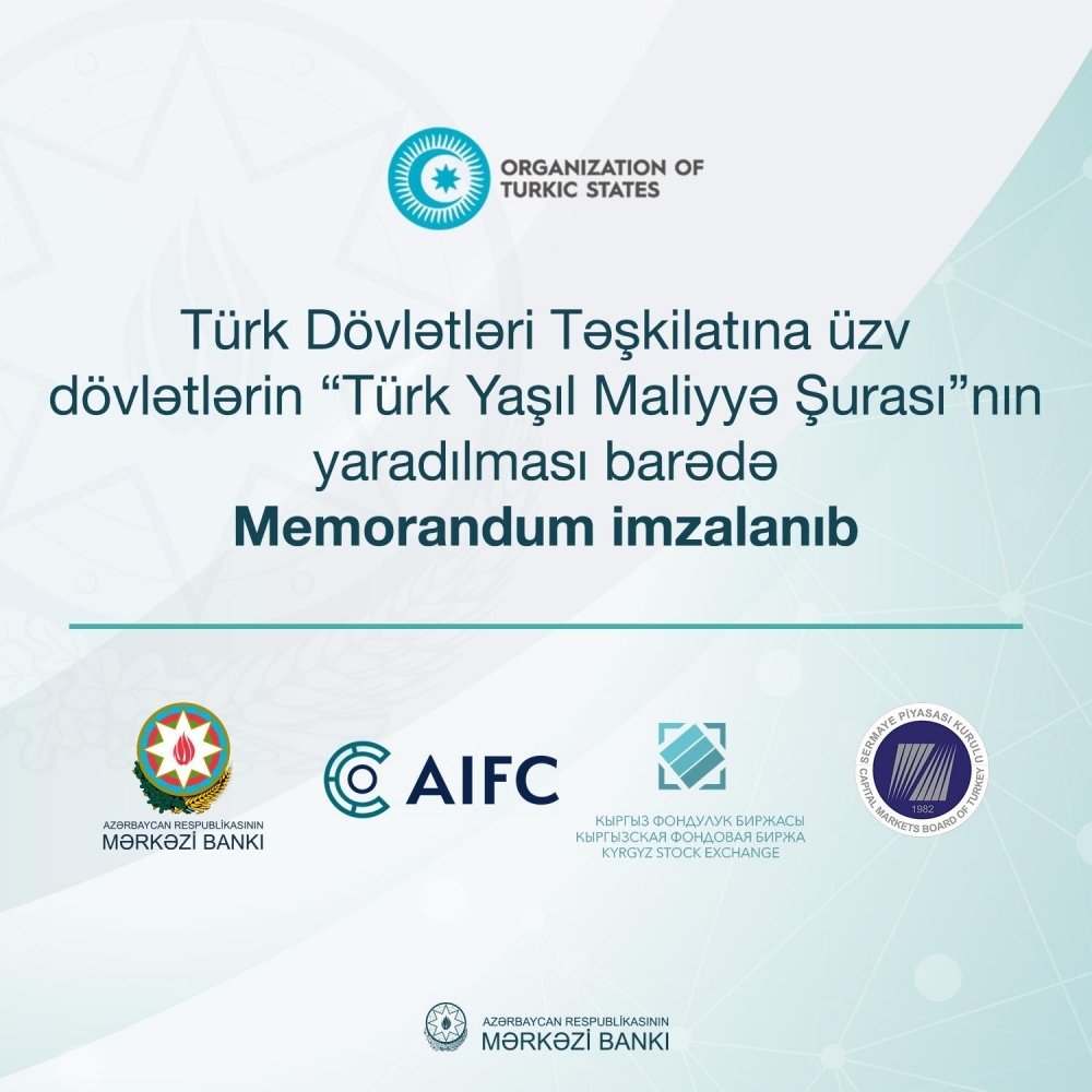 Azərbaycan Mərkəzi Bankının (AMB) sədri Taleh Kazımovun iştirakı ilə Qırğızıstanın paytaxtı Bişkekdə keçirilən Türk Dövlətləri Təşkilatının 11-ci Zirvə Görüşü çərçivəsində növbəti mühüm təşəbbüs Təşkilata üzv ölkələrin “Türk Yaşıl Maliyyə Şurası”nın yaradılması barədə Memorandumun imzalanması olub.