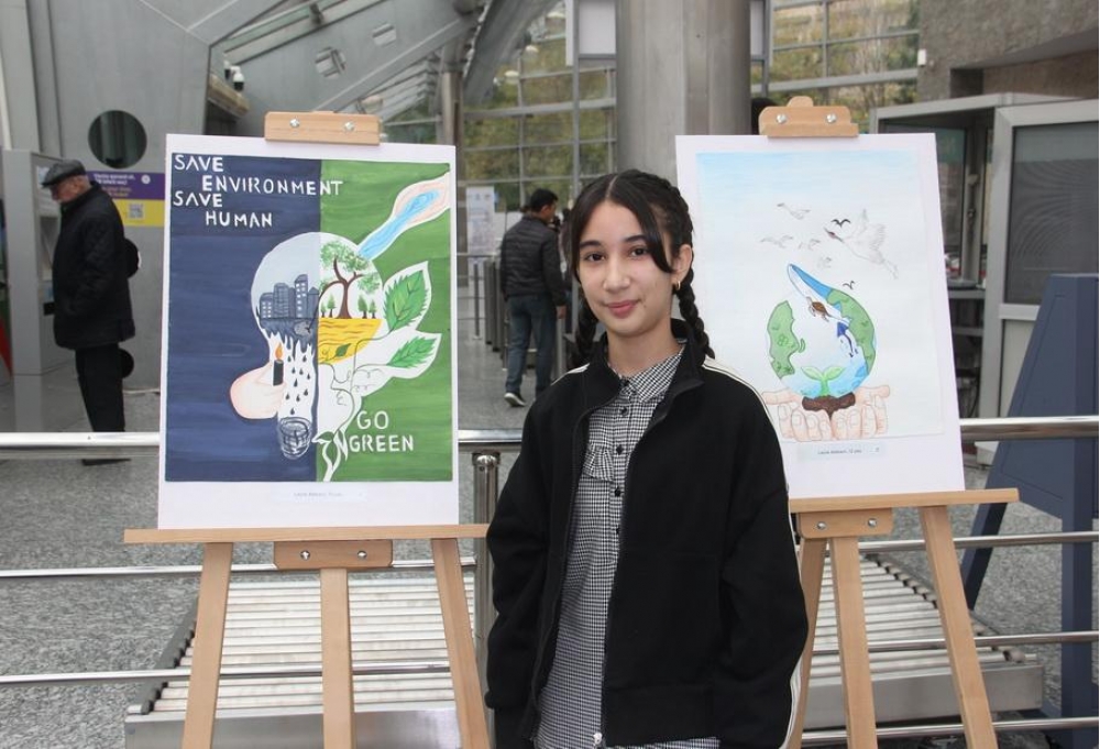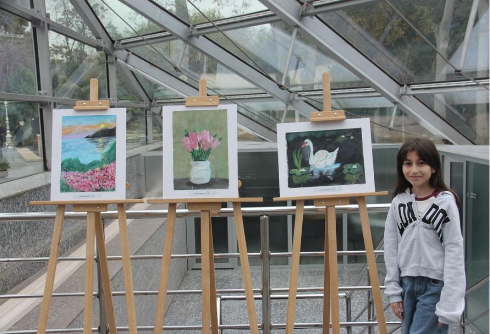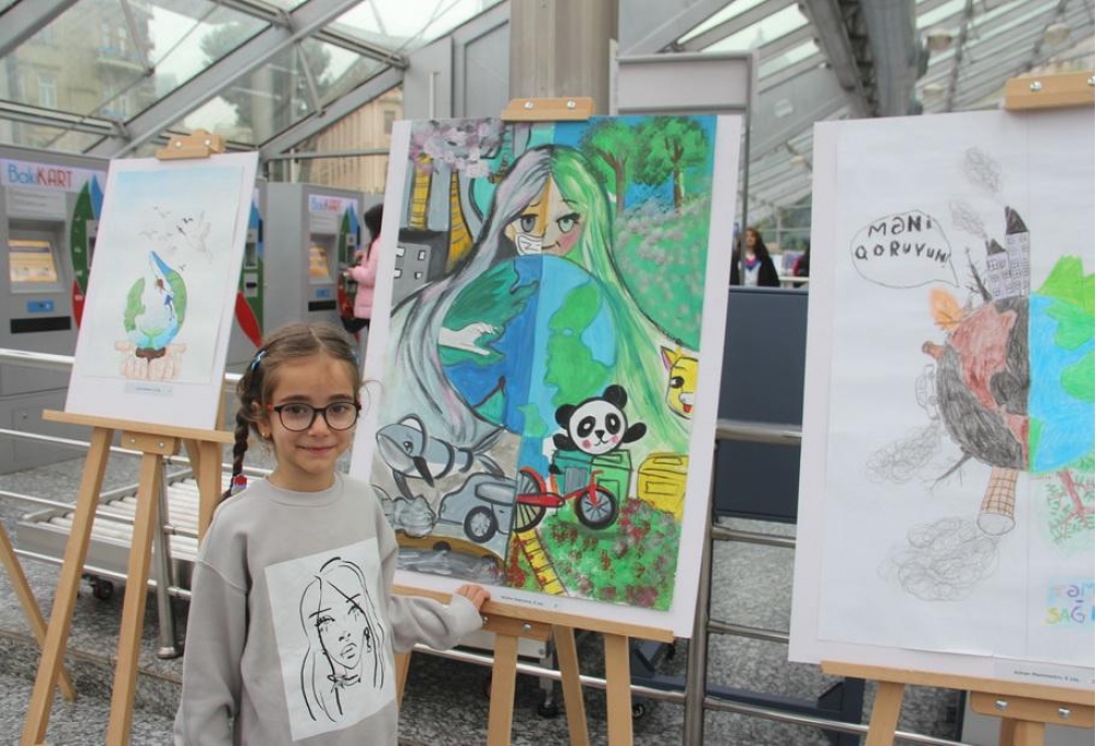 Nümayişə 16 məktəblinin təbiət mövzulu 55 rəsm əsəri çıxarılıb. Bir-birindən rəngarəng fotolardan ibarət sərgi 20 gün davam etdiriləcək və bir neçə stansiyada nümayiş olunacaq.