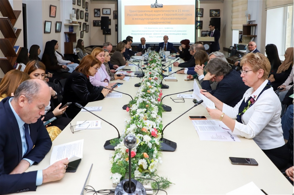 Rusiya Elmlər Akademiyasının müxbir üzvü, professor Aleksey Qromıko və Moskva Dövlət Beynəlxalq Münasibətlər İnstitutunun professoru Mark Entin müasir dövrdə mədəniyyətlərarası dialoqun elmi aspektlərini müzakirə edərək müxtəlif xalqların birgə yaşama mədəniyyətinin gücləndirilməsinin qlobal əhəmiyyətindən söz açıblar. Azərbaycan və Rusiya arasında əlaqələrin inkişafında mədəniyyətin vacib rolunu vurğulayan natiqlər bu əməkdaşlığın davamlı şəkildə genişləndirilməsinin vacibliyini qeyd ediblər. Beynəlxalq forumun əhəmiyyətindən danışan natiqlər gələcək elmi, mədəni əlaqələrin inkişafı, xarici əlaqələrin qurulması, tərəfdaşlıq münasibətlərinin yeni mərhələləri haqqında məlumat veriblər. Bildirilib ki, müasir dövrdə mədəniyyətlər sürətlə dəyişir və daha da şaxələnir. Bu dəyişiklik və şəxələnmə prosesinin cəmiyyətlər üzərində böyük təsirləri olur. Mədəni müxtəliflik cəmiyyətin ən önəmli elementidir, çünki tarix boyu mədəni müxtəlifliklərin yaranmasına bir sıra amillər səbəb olub.