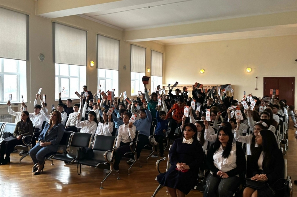 Sonda eşitmə və nitq məhdudiyyətli şəxslər üçün jest dilinə tərcümə edilmiş “Məişət zorakılığı qurbanlarının hüquqları” adlı bukletlər paylanıb.