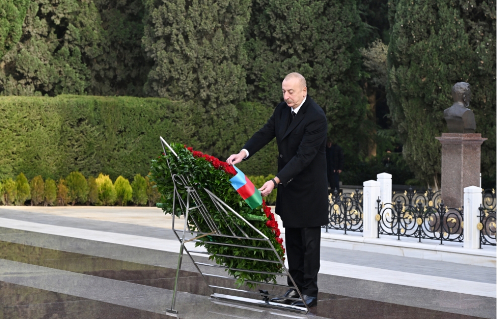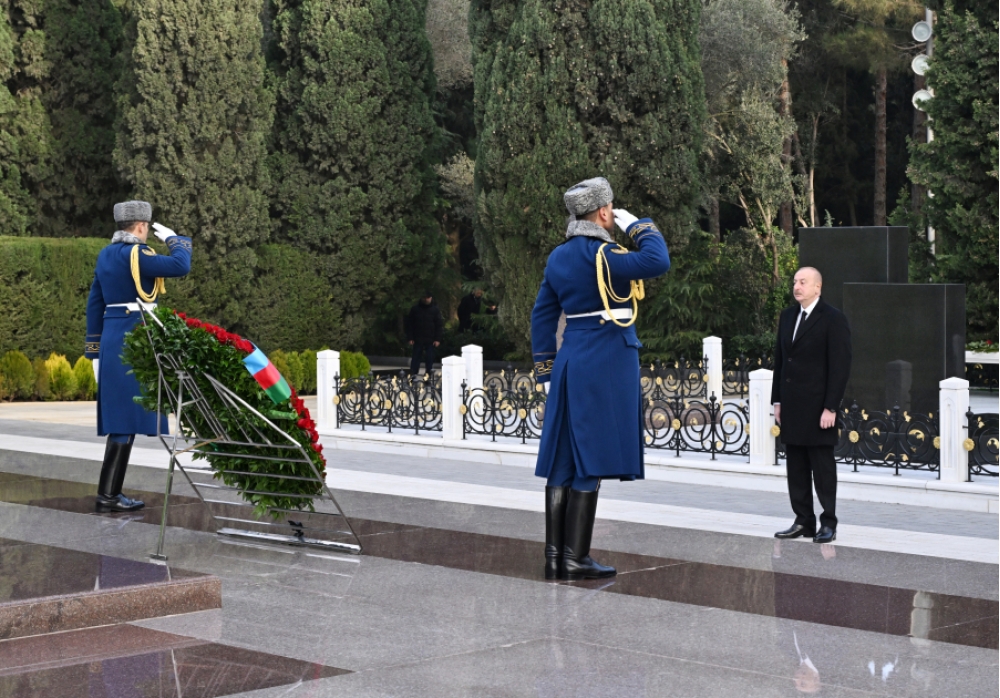 Prezident İlham Əliyev Ulu Öndərin məzarı önünə əklil qoydu.