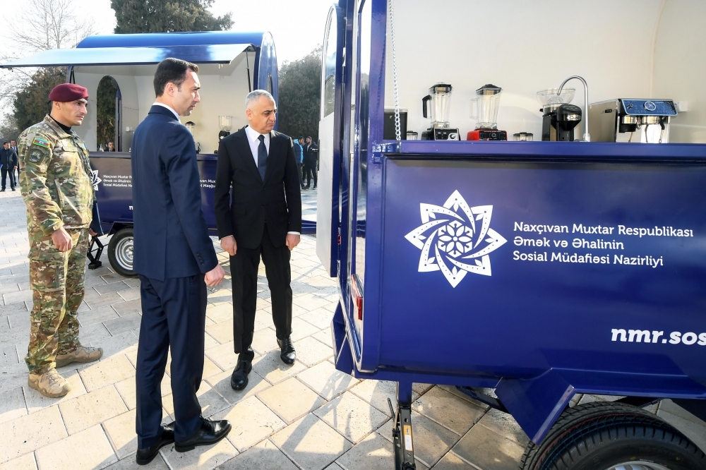 Müharibə ilə əlaqədar əlilliyi müəyyən olunmuş və Çernobil AES nəticələrinin aradan qaldırılması zamanı xəsarət alan və əlilliyi müəyyən olunmuş 12 nəfərə avtomobil, həmçinin "Naxçıvan Muxtar Respublikasının sosial-iqtisadi inkişafına dair 2023-2027-ci illər üçün Dövlət Proqramı"nda nəzərdə tutulan tədbirlərin icrası məqəsdilə Azərbaycan Respublikasının ərazi bütövlüyünün, müstəqilliyinin və konstitusiya quruluşunun müdafiəsi və hərbi xidmət vəzifələrini yerinə yetirməklə əlaqədar əlilliyi müəyyən olunmuş, eləcə də özünüməşğulluq proqramı üzrə aktivlərlə təmin olunmaq üçün müraciət edən şəxs olmaqla 2 nəfərə səyyar kofe evi təqdim edilib.