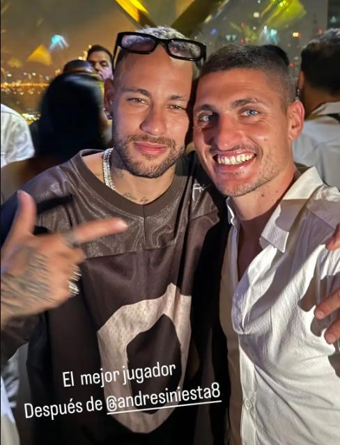Braziliya millisi və "Əl-Hilal"ın futbolçusu Neymar "Əl-Arabi"nin futbolçusu Marko Veratti ilə birgə şəklini paylaşıb.