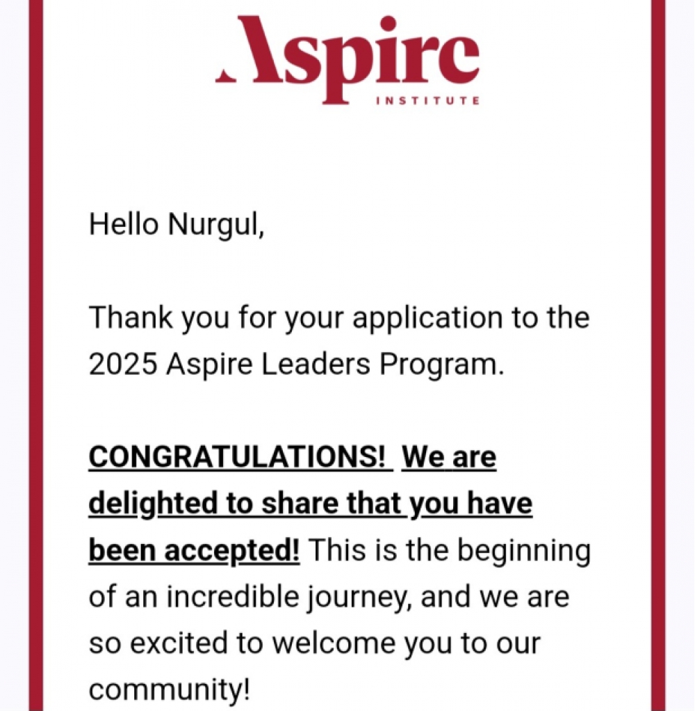 SOCAR-ın Bakı Ali Neft Məktəbinin (BANM) Kimya mühəndisliyi ixtisasının IV kurs tələbəsi Nurgül Əhmədova “Aspire Leaders” proqramına qəbul alıb.