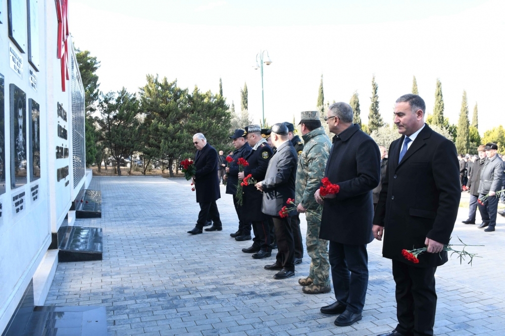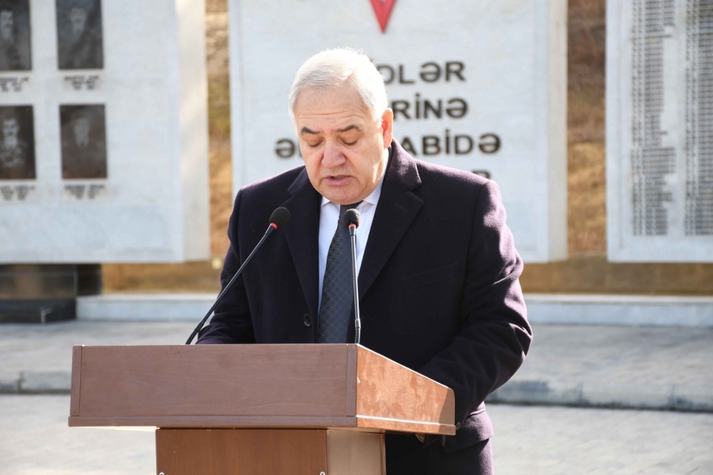 Sonda tədbir iştirakçıları Şəhidlər Abidə Kompleksinin önünə gül dəstələri düzərək şəhidlərin ruhuna ehtiramlarını ifadə edib.