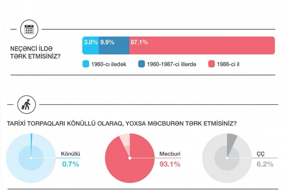 Qeyd edilib ki, bu nəticə Ermənistan hökumətinin etnik təmizləmə siyasətini təsdiq etməklə, azərbaycanlıların öz tarixi torpaqlarını zorakılıq, təzyiq və təhlükələr şəraitində tərk etmək məcburiyyətində qaldığını göstərir. 0.7%-lik göstərici isə könüllü olaraq köç edənlərin məhz 1988-ci ildən əvvəlki dövrə aid olanlar olduğunu müəyyən edir. Sorğu iştirakçılarının 6.2%-i bu sualı cavablandırmaqda çətinlik çəkib.