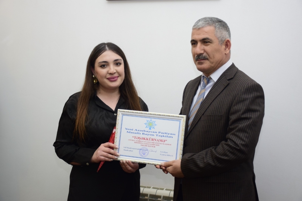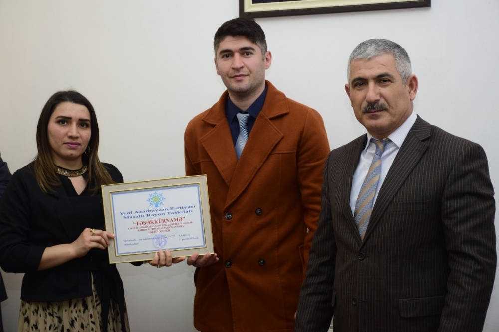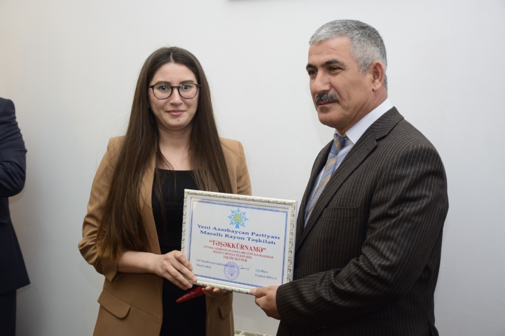 Tədbirin sonunda 2 fevral-Azərbaycan Gəncləri günü münasibəti ilə bir qrup gənclərə, vətən müharibəsi iştirakçılarına qiymətli hədiyyələr, fəxri fərmanlar və təşəkkürnamələr verilmişdir.