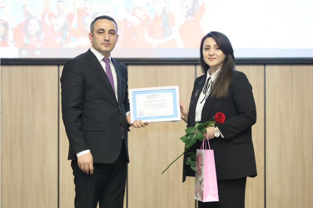 Daha sonra gənc təhsil işçiləri öz təbriklərini tədbir iştirakçıları ilə bölüşüblər. Şagirdlər tərəfindən müxtəlif ədəbi-bədii kompozisiyalar nümayiş etdirilib.