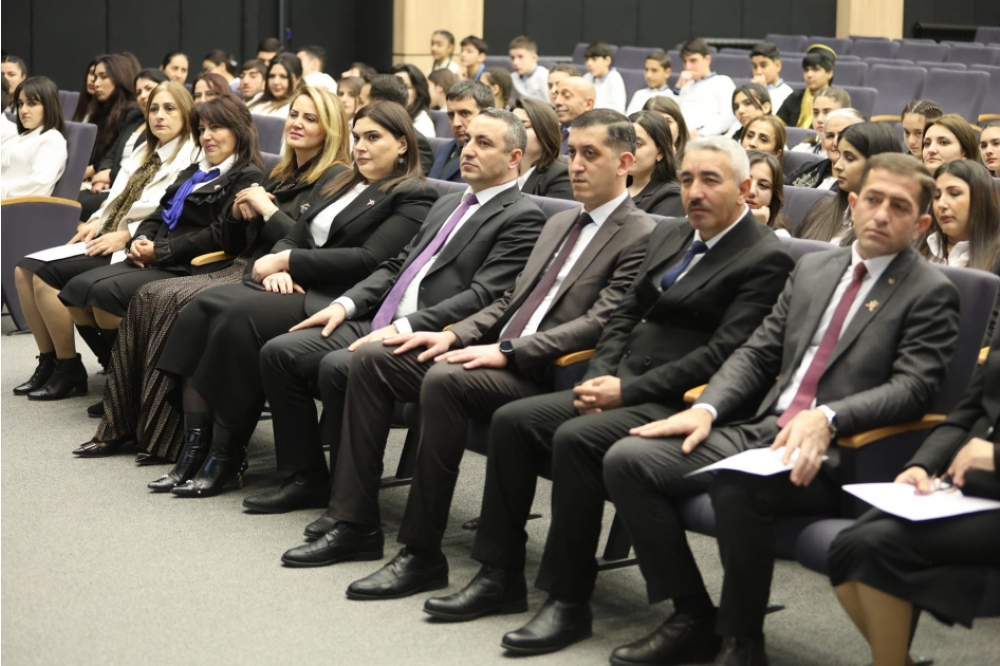 Qarabağ Regional Təhsil İdarəsinin müdiri Sənan Mənsimli Ulu Öndər Heydər Əliyevin əsasını qoyduğu və bu gün də uğurla davam etdirilən gənclər siyasətindən bəhs edib. Bildirib ki, müəllimlərin işə qəbulunda, təhsil müəssisələrində müvafiq vəzifələrə təyinatda innovativ və müasir düşüncəli gənclərə üstünlük verilməsi, gənclərə stimullaşdırıcı tədbirlərin tətbiq edilməsi gənclər siyasətinin bariz nümunəsidir. O, həmçinin gənclərin təhsildə rolu və bu gün işğaldan azad olunmuş ərazilərdə fəaliyyət göstərmənin önəmindən və məsuliyyətindən də danışıb.