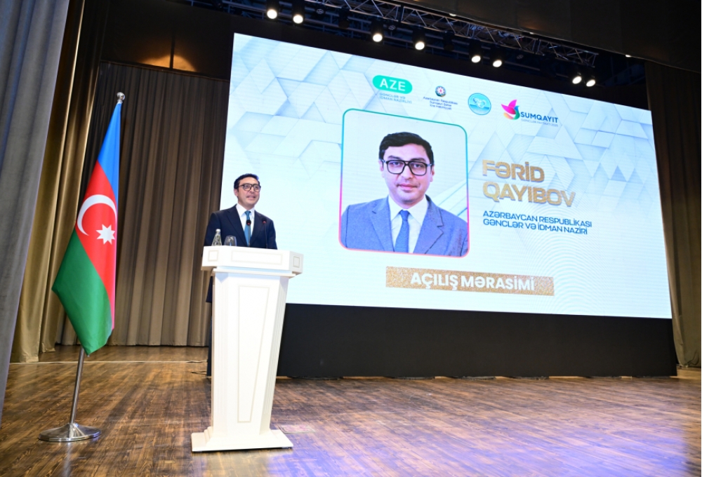 Sonra gənclər və idman naziri Fərid Qayıbov Gənclər Paytaxtının rəmzi açarını icra başçısına təqdim edib. Nazir Ulu Öndərin gənclərə böyük qayğı və diqqət göstərdiyini, gənclərin Azərbaycanın dünyada tanınmasında böyük rol oynadığını bildirib. Azərbaycanda 400-ə yaxın gənclər təşkilatının olduğunu vurğulayan Fərid Qayıbov ölkənin gələcəyinin onların əlində olduğunu deyib. O, Sumqayıtda il ərzində müxtəlif yerli və beynəlxalq tədbirlərin keçiriləcəyini də diqqətə çatdırıb.