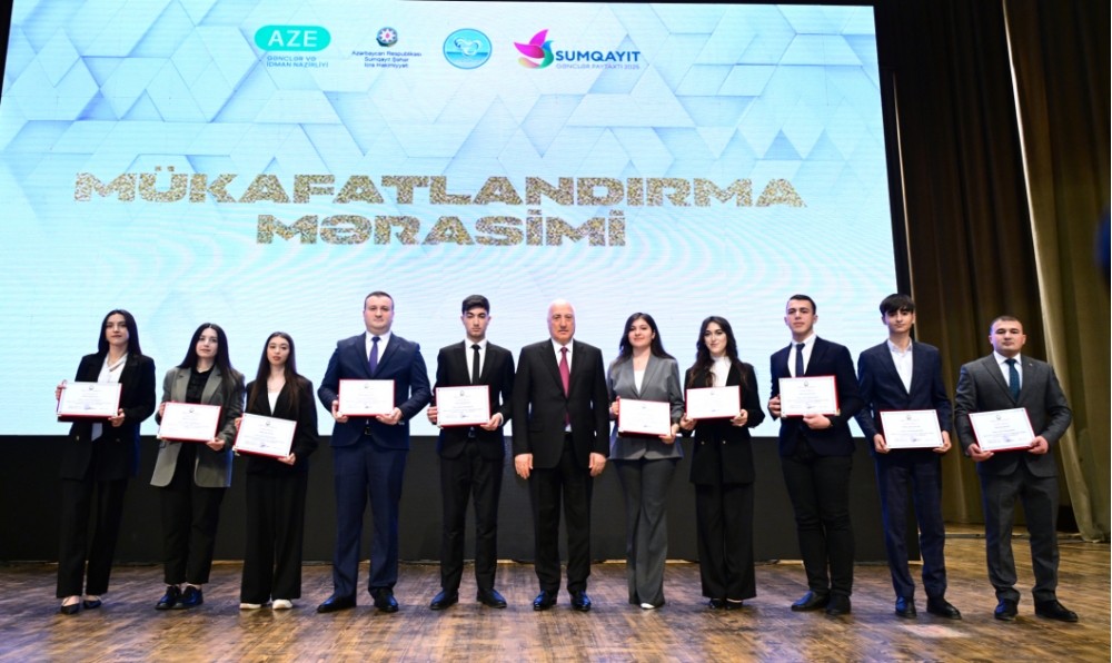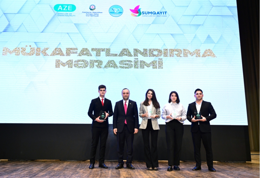 Tədbirin sonunda müxtəlif beynəlxalq arenalarda Azərbaycanı layiqincə təmsil etmiş və ilboyu aktiv fəaliyyət göstərən Sumqayıt gənclərinə şəhər icra hakimiyyətinin başçısı adından fəxri fərmanlar təqdim edilib.