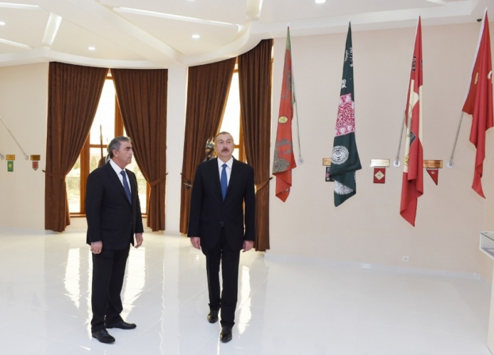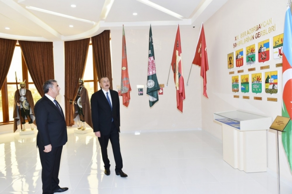 AZƏRTAC xəbər verir ki, Prezident İlham Əliyev muzeyin rəmzi açılışını bildirən lenti kəsdi.
