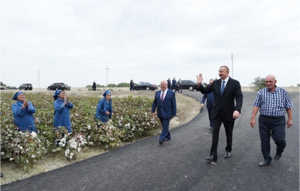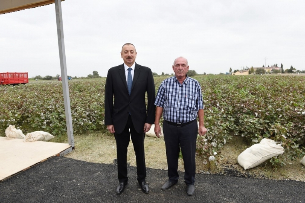 Azərbaycan Respublikasının Prezidenti İlham Əliyev sentyabrın 24-də Neftçala rayonu ərazisində fermer Əlihüseyn Hacıyevin pambıq sahəsi ilə tanış olub.