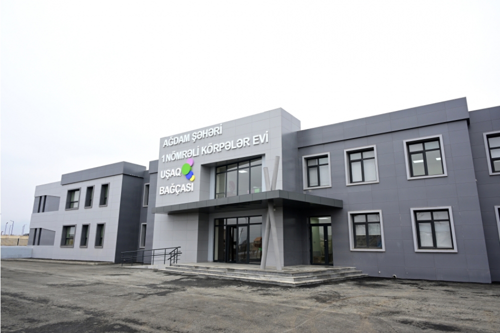 Azərbaycan Respublikasının Prezidenti İlham Əliyev və birinci xanım Mehriban Əliyeva fevralın 18-də Ağdam şəhərində 1 nömrəli körpələr evi-uşaq bağçasında aparılan tikinti işləri ilə tanış olublar.