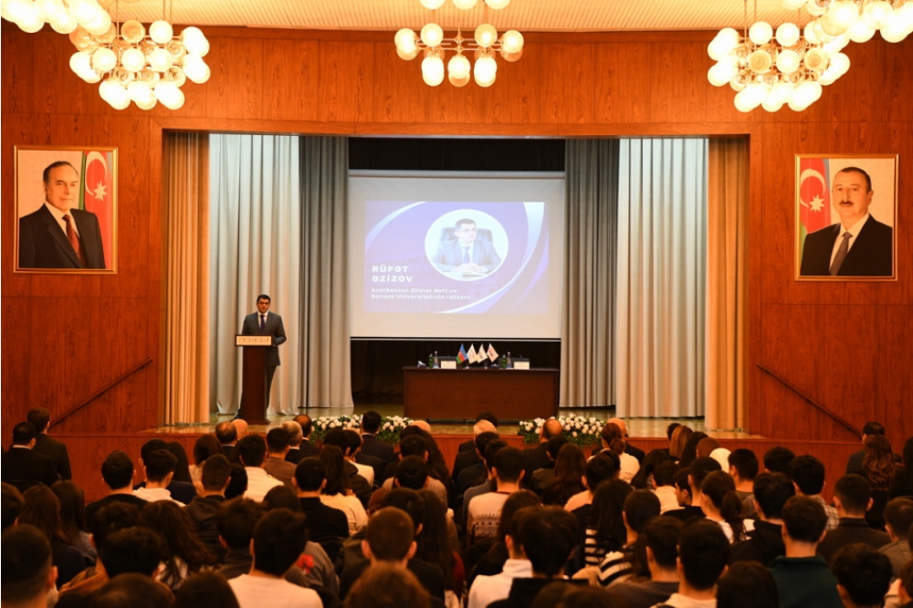 “Danışır sənaye” silsilə mühazirələri çərçivəsində universitetin müəllim və tələbə heyəti qarşısında çıxış edən “Balakhani Operating Company LTD”nin prezidenti Rövşən Rzayev “Neft sənayesinin dayanıqlı gələcəyi: istiqamətimiz haradır?” mövzusunda fikirlərini bölüşüb. O, Ulu Öndərin təhsil aldığı, Xoşbəxt Yusifzadə və çoxlu sayda digər tanınmış məzunları olan ADNSU-nun yetişdirdiyi mütəxəssislərin Vətənimizin enerji sektorunu yaradanları olduğunu bildirib. 4-cü Sənaye İnqilabı dövründə dayanıqlılıq standartlarını yüksəltməyə çalışan hasilat şirkətlərinin bu gün yeni təfəkkürlü, innovativ, bilikli gənclərə böyük ehtiyacı var: “Enerji sərvətlərimizin işlənilməsi məsuliyyətli və dayanıqlı şəkildə aparılmalıdır ki, Azərbaycanın rifahına və qlobal enerji təhlükəsizliyinə töhfə verməkdə davam etsin. Balaxanı Əməliyyat Şirkəti ADNSU ilə əməkdaşlıq quraraq, sinif otağı ilə sənayeni biri-birinə yaxınlaşdırıb, qarşılıqlı şəkildə yeni ideya və innovativ təcrübələrlə çıxış edib ölkəmizin neft və qaz hasilatının dayanıqlılıq erasını birgə quracaq”.