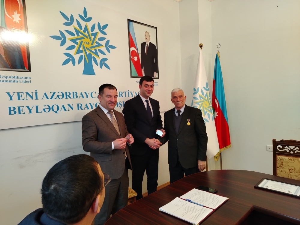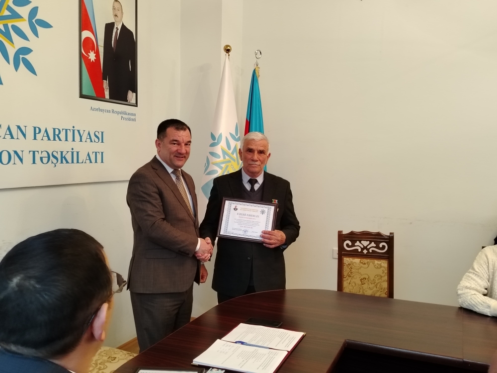 Tədbirin sonunda bir qrup gənc Yeni Azərbaycan Partiyası üzvünə yeni partiya vəsiqələri, bir qrup veteran Partiya üzvünə və Ərazi Partiya Təşkilat sədrinə Fəxri Fərman təqdim edildi.