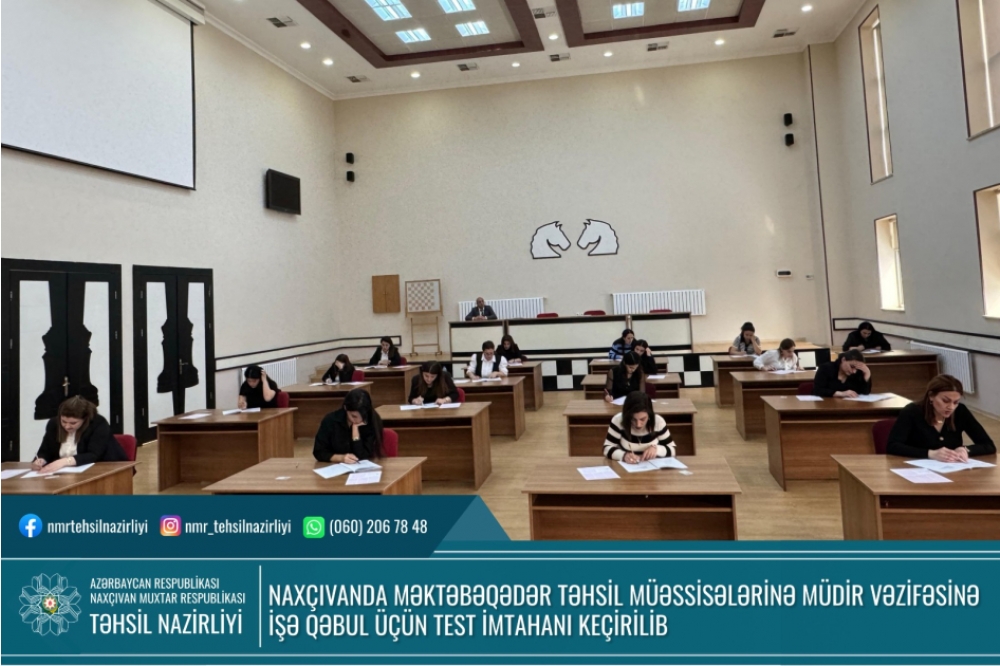 Fevralın 22-də Naxçıvanda məktəbəqədər təhsil müəssisələrində vakant müdir vəzifəsinə ölkə üzrə mərkəzləşmiş qaydalara uyğun olaraq işə qəbul üçün test imtahanı mərhələsi təşkil olunub.