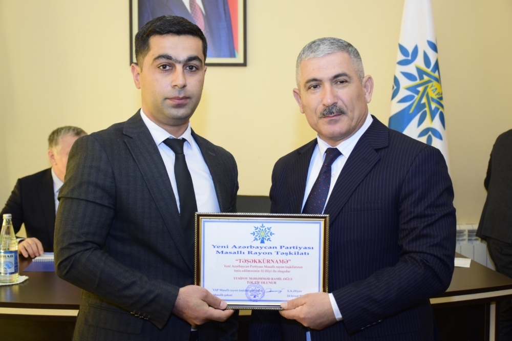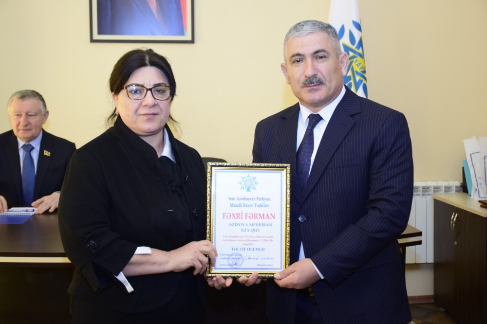 Tədbirin sonunda Masallı rayonunun ictimai-siyasi həyatında fərqlənən bir qrup partiya fəalına fəxri fərmanlar, təşəkkürnamələr və qiymətli hədiyyələr təqdim edilib.