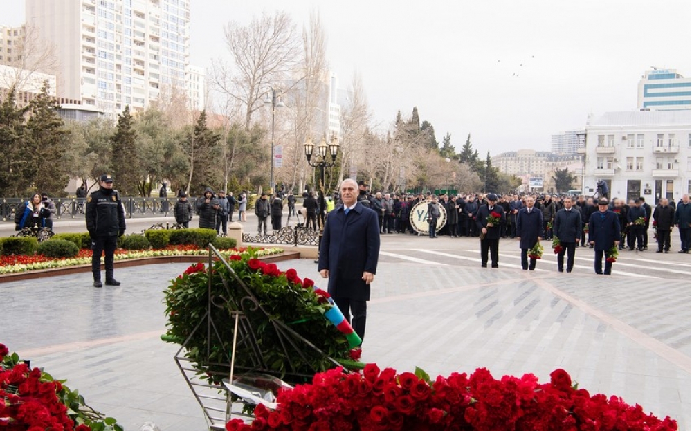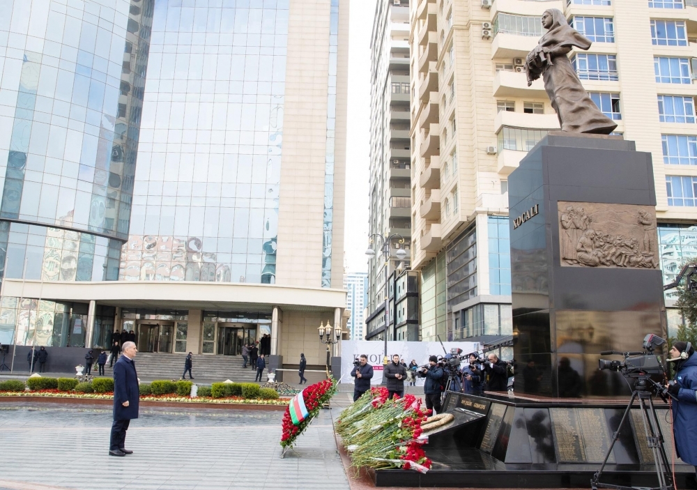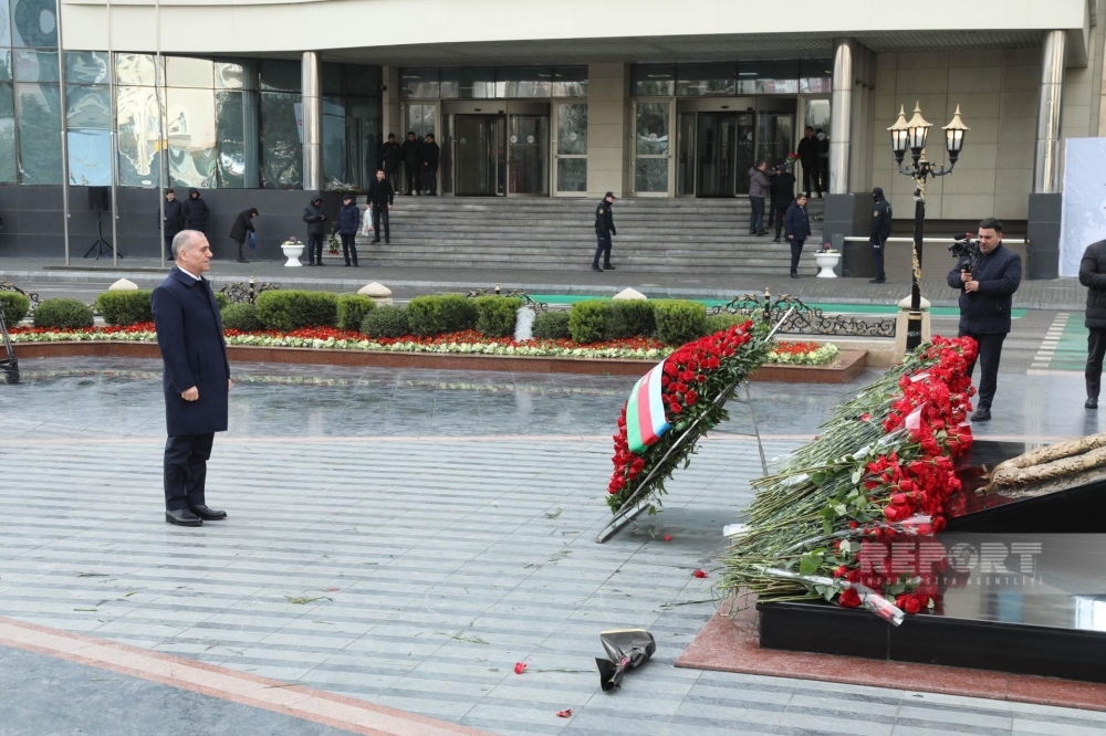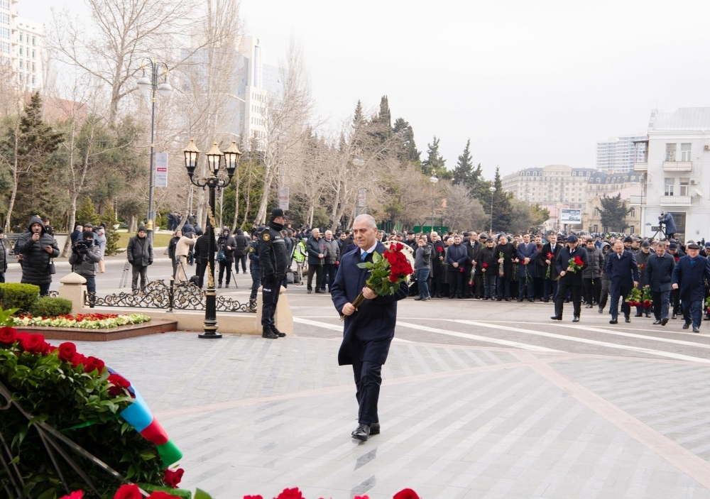 Abidənin önünə gül dəstələri düzülüb, faciə qurbanlarının xatirəsi dərin ehtiramla yad olunub.