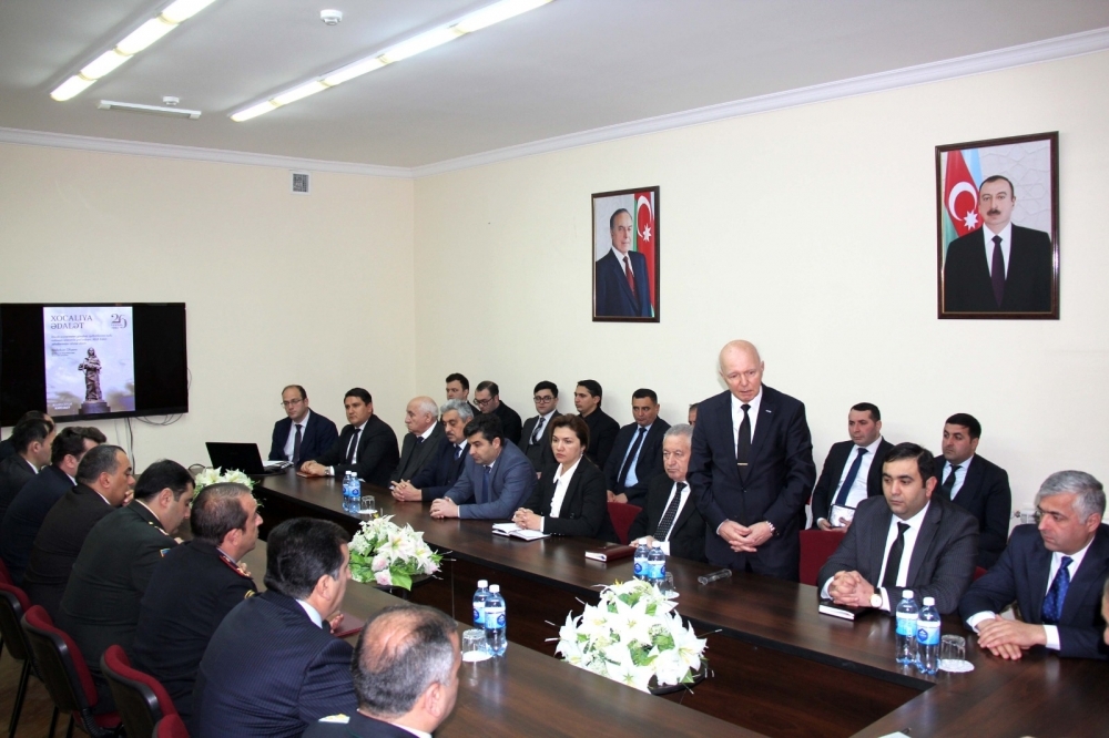 Çıxışlarda erməni qəsbkarlarının azərbaycanlılara qarşı əsrlər boyu həyata keçirdiyi etnik təmizləmə siyasətindən, o cümlədən Xocalı soyqırımının ağır nəticələrindən bəhs edilib. Erməni işğalçı qüvvələrinin Xocalıda törətdikləri kütləvi qırğının sülh və insanlıq əleyhinə yönələn əməl olduğu və ən ağır beynəlxalq cinayət sayıldığı qeyd olunub, soyqırımı aktına ilk dəfə Ümummilli Lider Heydər Əliyev tərəfindən hüquqi-siyasi qiymət verildiyi vurğulanıb. Xatırladılıb ki, 1994-cü ildə Xocalı soyqırımı ilə əlaqədar Ulu Öndər Heydər Əliyev xüsusi Fərman imzalayıb və onun təşəbbüsü ilə Milli Məclis tərəfindən “26 fevral - Xocalı soyqırımı günü haqqında” qərarı qəbul edilib.