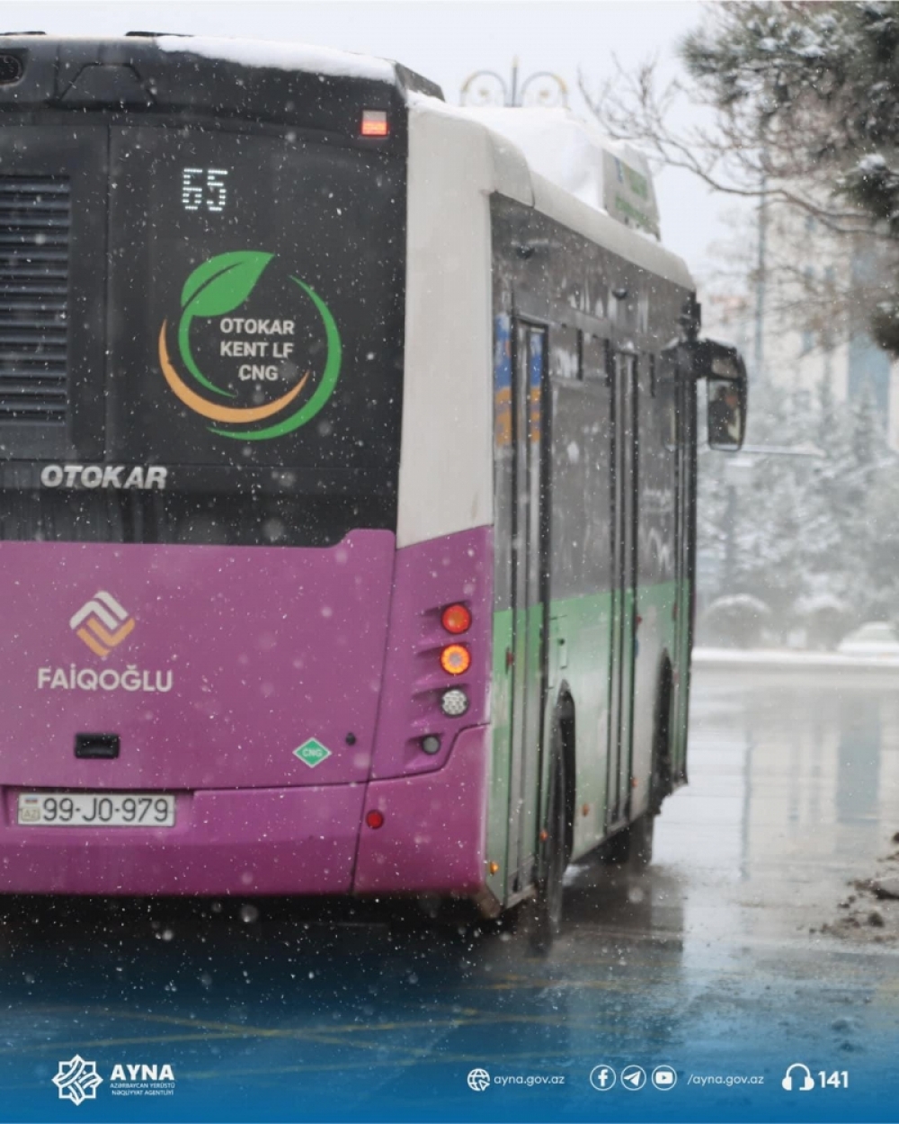 Qarlı hava şəraitində ictimai nəqliyyatın fasiləsizliyi təmin edilib və əhalinin xidmətindədir.