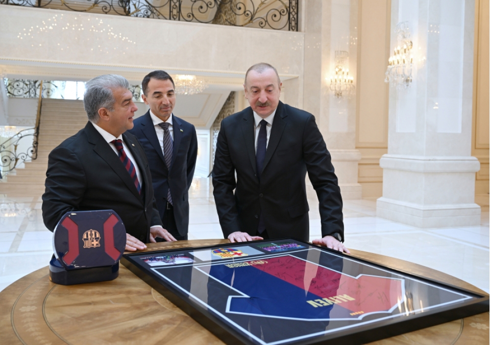 Xuan Laporta Azərbaycan Prezidentinə xatirə hədiyyəsi təqdim etdi.