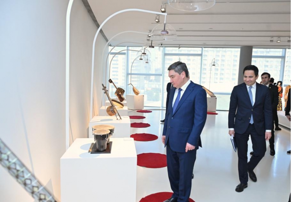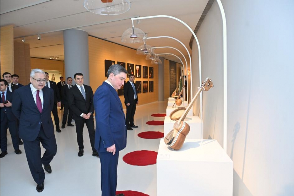 "Musiqi alətləri: Birlik və müxtəliflik" sərgisi ilə tanışlıqdan sonra Oljas Bektenov Azərbaycan xalçalarından ibarət "İlmələrin rəqsi" sərgisinə baxış keçirib.