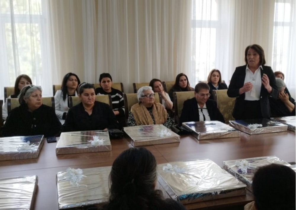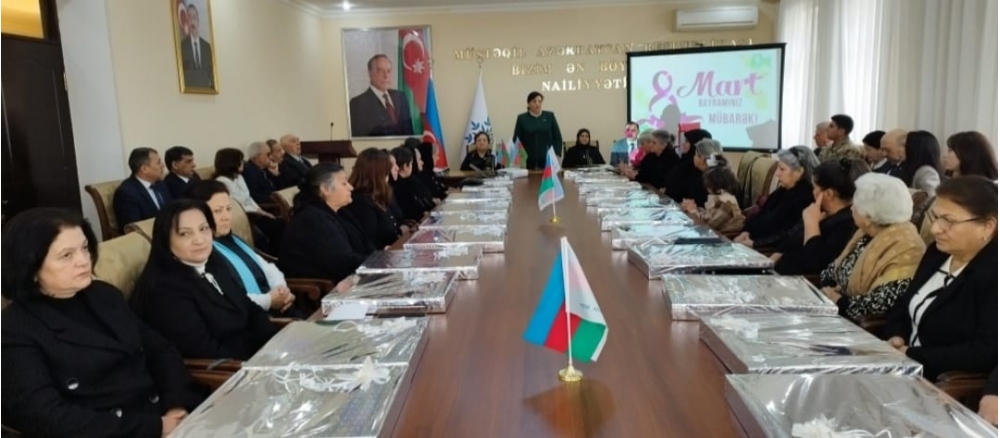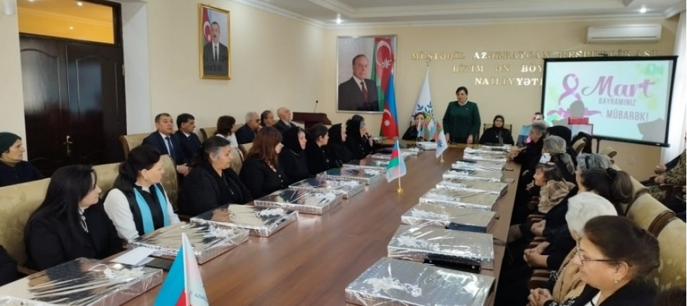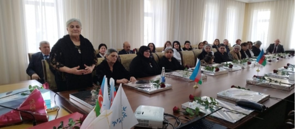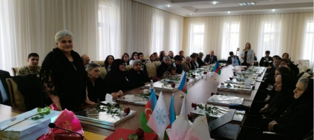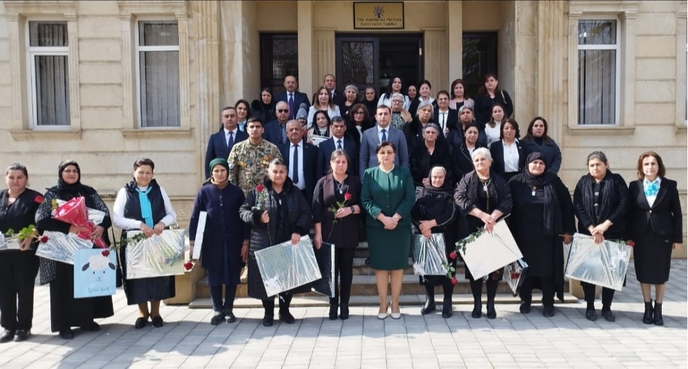 Sonda şəhid anaları və rayonun fəal qadınlarına YAP Bərdə rayon təşkilatının bayram hədiyyələri təqdim edilmişdir.