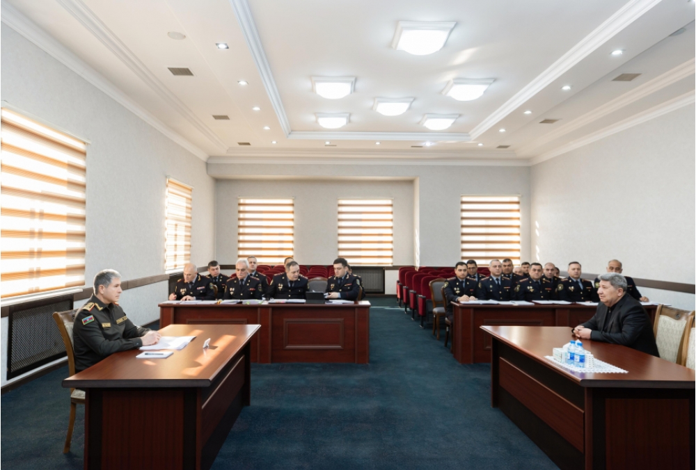 Səfər çərçivəsində general-polkovnik V.Eyvazov bölgə üzrə polis orqanlarında sıravi və kiçik rəis heyətinə xidmətə qəbulla bağlı sıra baxışı keçirib.
