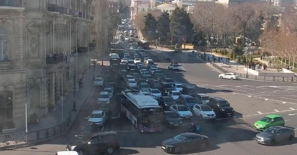 Bakının bir sıra yollarında sıxlıq müşahidə olunur.