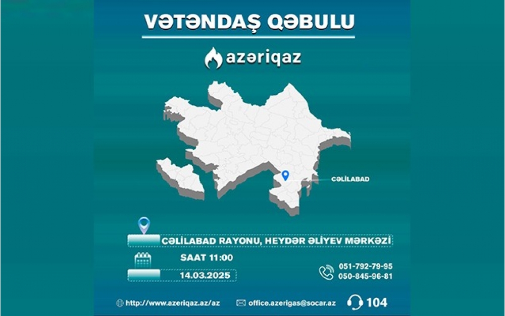 “Azəriqaz” İstehsalat Birliyinin baş direktoru Azər Məmmədovun Cəlilabad rayonunda vətəndaş qəbulu keçiriləcək.