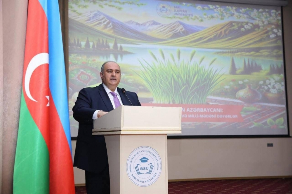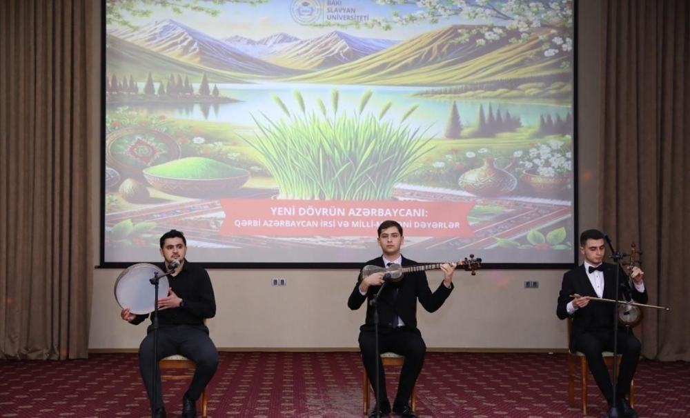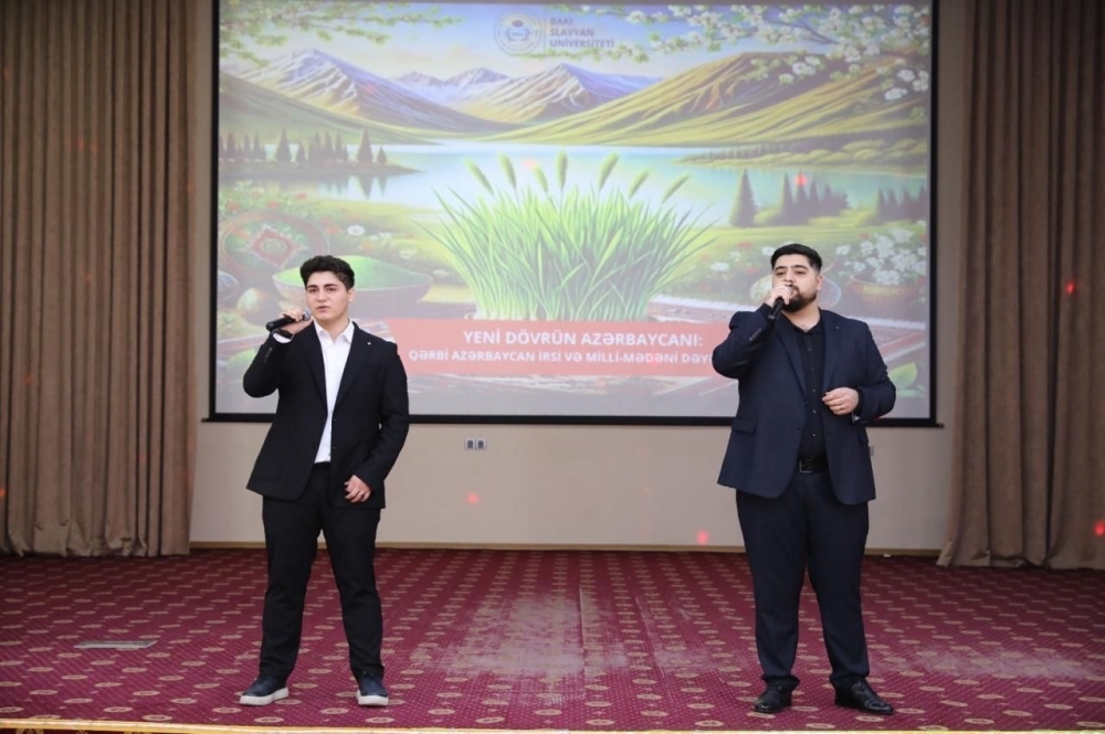 Martın 18-də Bakı Slavyan Universitetində (BSU) “Yeni dövrün Azərbaycanı: Qərbi Azərbaycan irsi və milli mədəni dəyərlər” mövzusunda tədbir keçirilib. Tədbirdə BSU-nun rektoru Anar Nağıyev, Azərbaycan Milli Elmlər Akademiyasının (AMEA) akademiki Abel Məhərrəmov, Azərbaycan Dövlət Pedaqoji Universitetinin (ADPU) Beynəlxalq əlaqələr üzrə prorektoru, professor Mahirə Nağıqızı, Azərbaycan Dillər Universitetinin (ADU) Azərbaycan ədəbiyyatı kafedrasının müdiri, akademik Muxtar İmanov, AMEA-nın Folklor üzrə Elmi Şurasının sədr müavini Mahmud Allahmanlı çıxış ediblər.