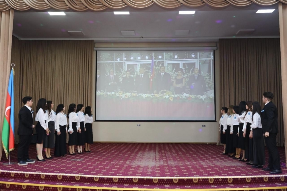 Rektor çıxışında bildirib ki, biz çox xoşbəxt və qürurluyuq ki, Novruz tonqallarının bütün Azərbaycanda alovlanmasının şahidi oluruq. Ölkə rəhbəri Prezident İlham Əliyevin Şuşada, Xankəndidə, Ağdamda, Xocalıda və digər bölgələrdə Novruz tonqalı yandırması hər birimizin qürur və xoşbəxtlik mənbəyidir. Biz hər birimiz qürurluyuq ki, dövlət başçımızın qurduğu yeni dövrün Azərbaycanında yaşayırıq.