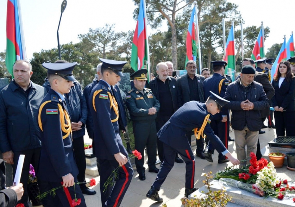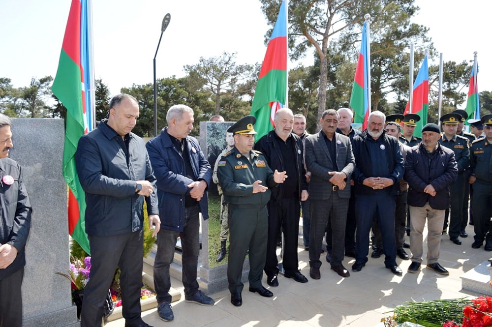 Anım mərasimi çərçivəsində şəhid kapitan S.Kərimovun Şəhidlər Xiyabanındakı məzarı ziyarət olunub, üzərinə gül düzülüb, ruhuna dualar oxunub, xatirə fotosu çəkdirilib.