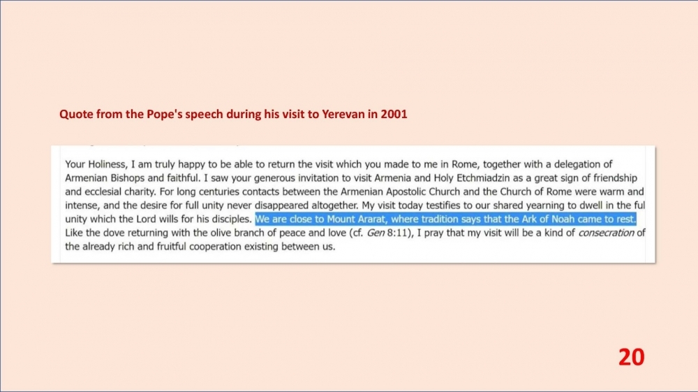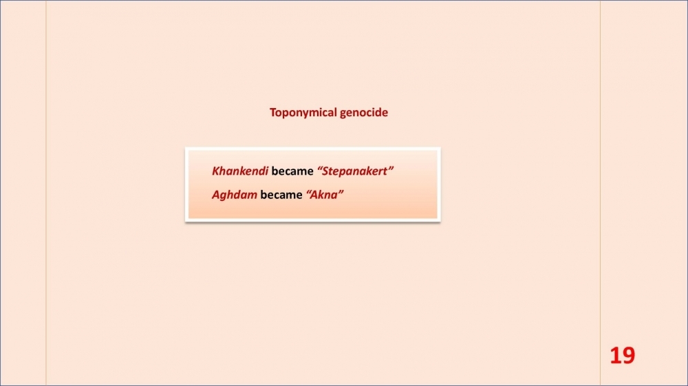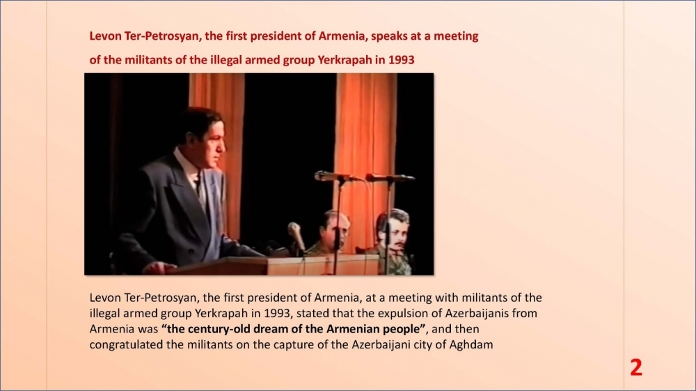 O, eyni zamanda, birinci Ermənistan prezidenti Levon Ter-Petrosyanın 1993-cü ildə “Erkrapa” qanunsuz silahlı birləşməsinin iştirakçıları ilə keçirdiyi görüş zamanı dediklərini xatırladıb. Həmin vaxt Ter-Petrosyan azərbaycanlıların Ermənistandan qovulmasını “erməni xalqının çox köhnə arzusu” olduğunu bildirmiş və döyüşçüləri Ağdamın işğalı münasibətilə təbrik etmişdi.