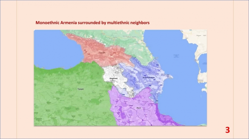 “Ermənistan fəxarətlə özünü monoetnik dövlət adlandırır, halbuki onun ətrafında olan ölkələrin hamısı çoxmillətli ölkələrdir və orada müxtəlif etiqad və mədəniyyətlərdən olan insanlar tarixən sülh və barışıq şəraitində yaşayıblar”, - deyə politoloq vurğulayıb.