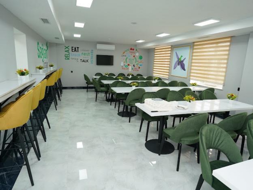 Yataqxanada böyük və müasir yeməkxana, eləcə də bütün mərtəbələrdə zəruri avadanlıqlarla təchiz olunumuş geniş mətbəxlər mövcuddur.