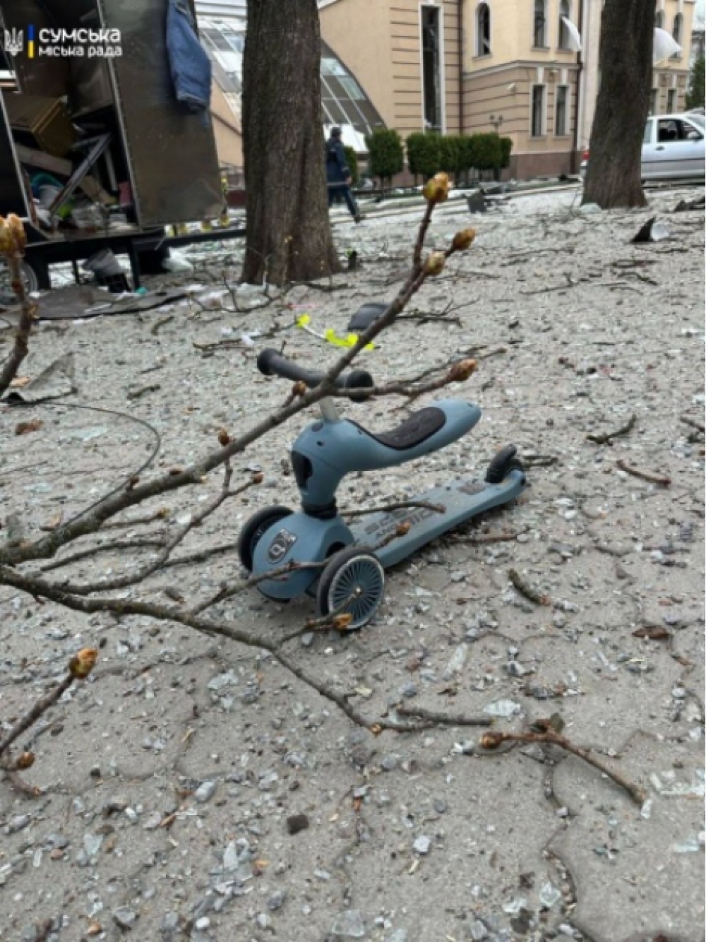 Aprelin 13-də Rusiya ordusu tərəfindən Ukraynanın Sumı şəhərinin mərkəzinin iki ballistik raketlə vurulması nəticəsində həlak olan mülki şəxslərin sayı 31 nəfərə çatıb, 84 nəfər isə xəsarət alıb.
