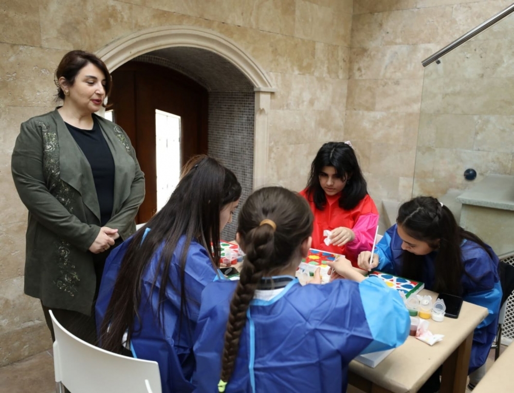 Görüşdə şagirdlər Azərbaycan xalçalarının əsas məktəbləri və onların naxışları ilə də tanış olublar. Hər birinin kətan üzərində işlədiyi xalça naxışında gənclər milli kimlik rənglərini seçib, yaradıcı şəkildə “Sona ananın xalçasını” canlandırıblar.