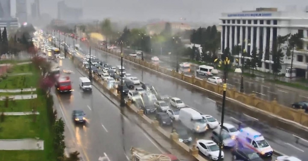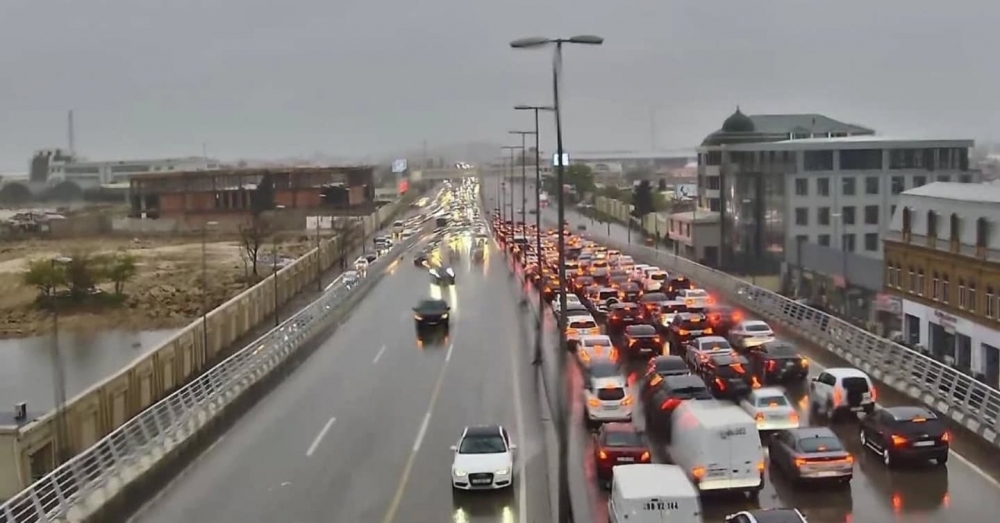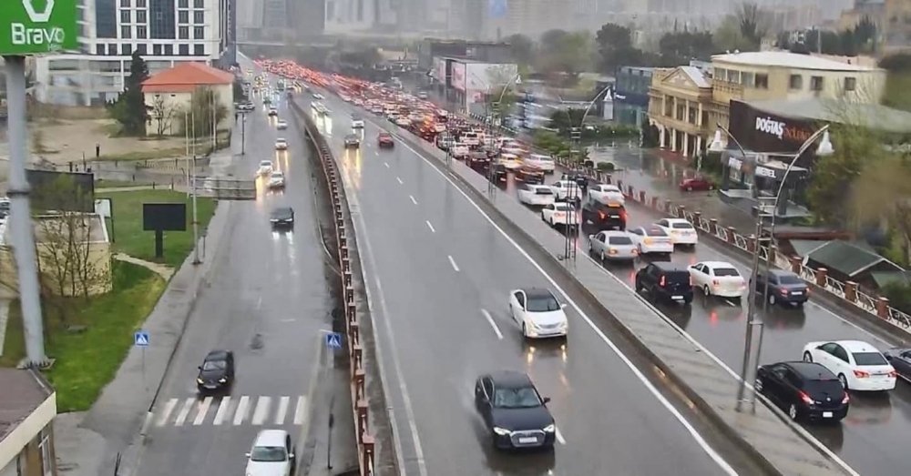 Bakının bir sıra yollarında nəqliyyatın sıxlığı yaranıb.