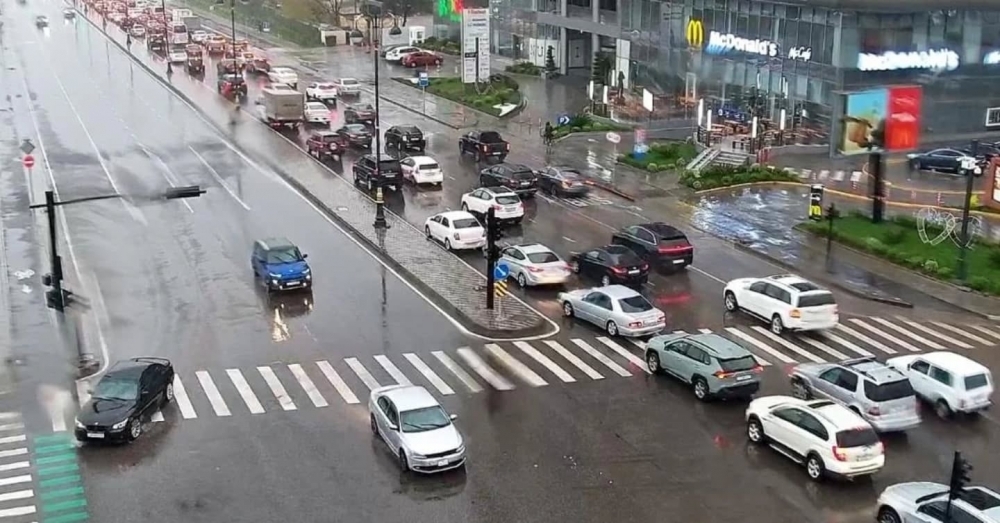 8. 8 Noyabr prospekti, Süleyman Əhmədov küçəsi ilə kəsişmədən mərkəz istiqamətində sıxlıq müşahidə olunur.