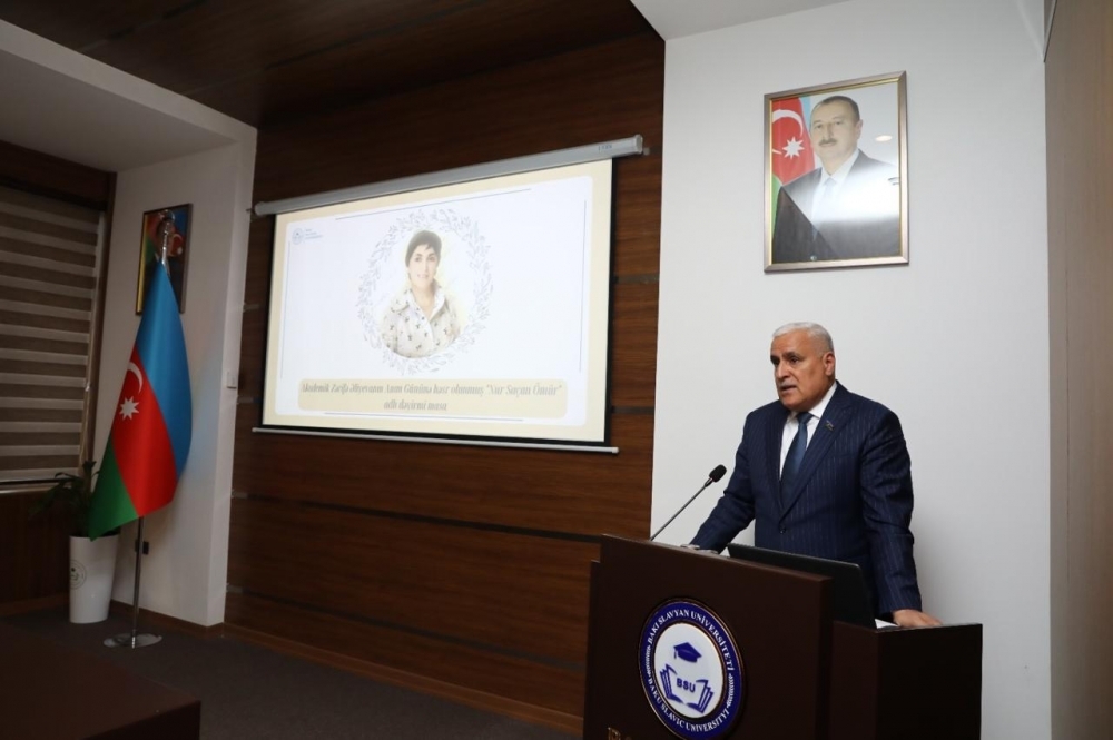 Tədbiri giriş sözü ilə açan BSU-nun rektoru Anar Nağıyev akademik Zərifə xanım Əliyevanın Azərbaycan ictimai-siyasi, elmi və təhsil həyatının ən görkəmli simalarından biri olduğunu vurğulayaraq, onun 20-ci əsrdə Azərbaycanın tibb elminin inkişafında müstəsna xidmətlər göstərdiyini bildirib.