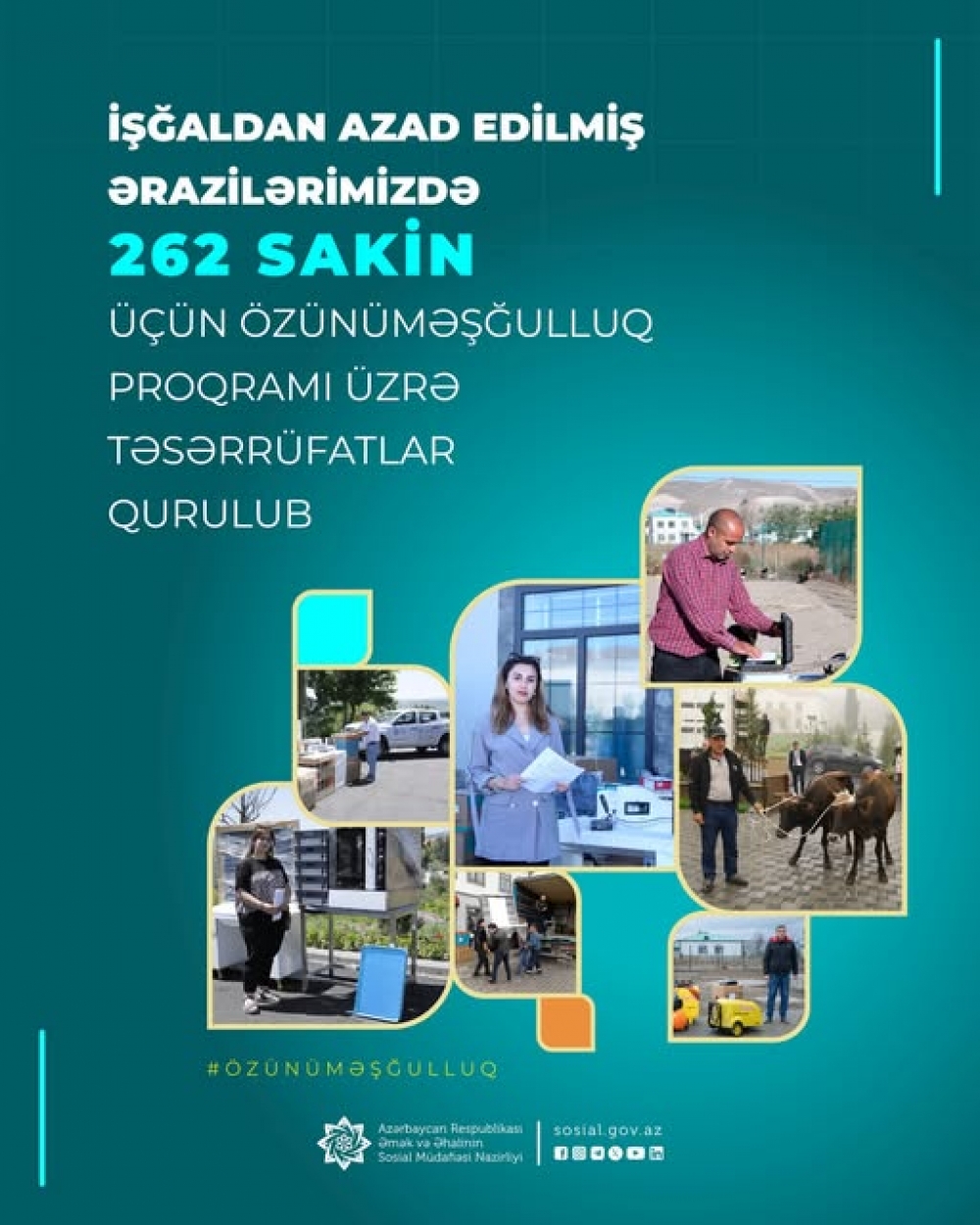 İşğaldan azad edilmiş ərazilərdə özünüməşğulluq proqramı çərçivəsində 266 sakin üçün kiçik təsərrüfatlar qurulub.