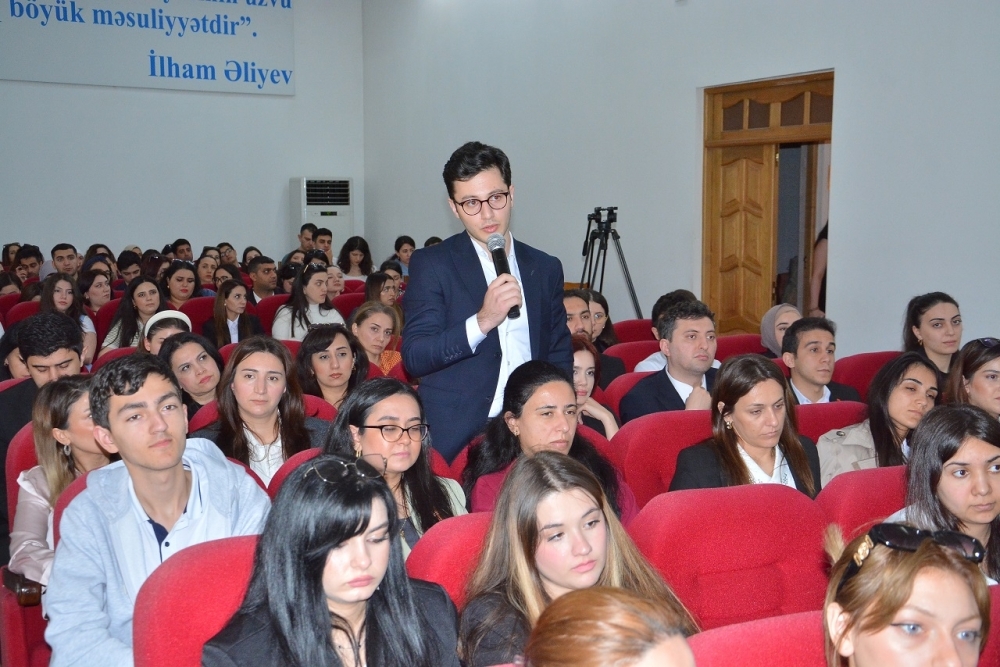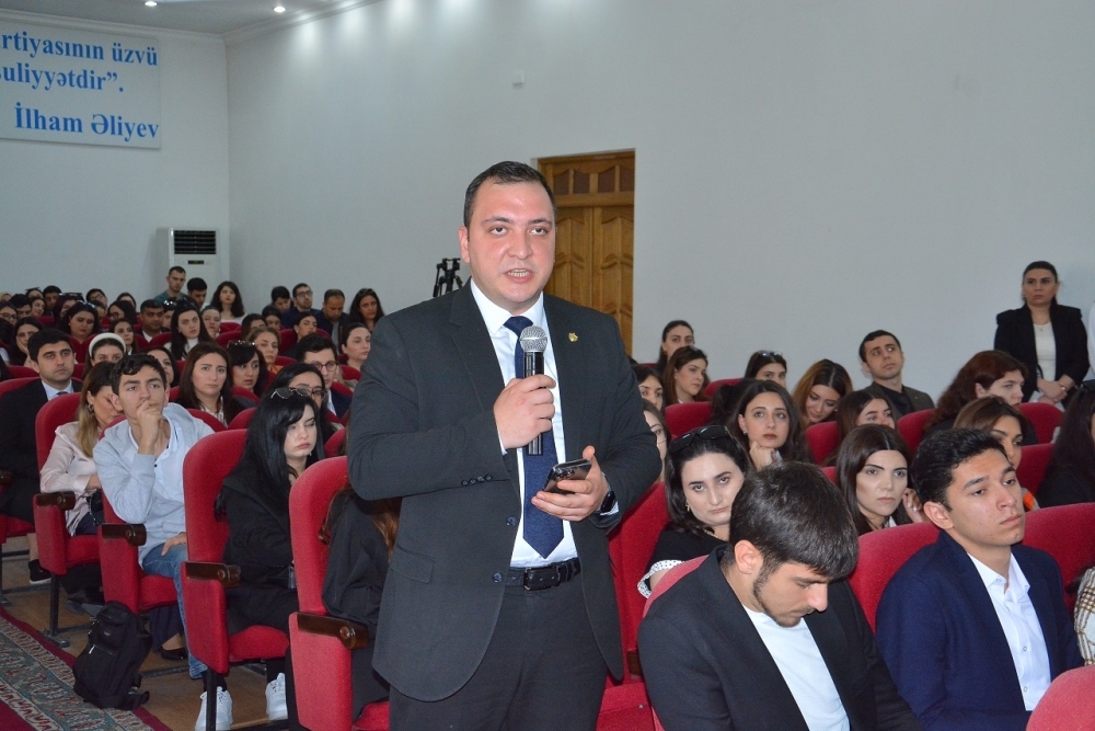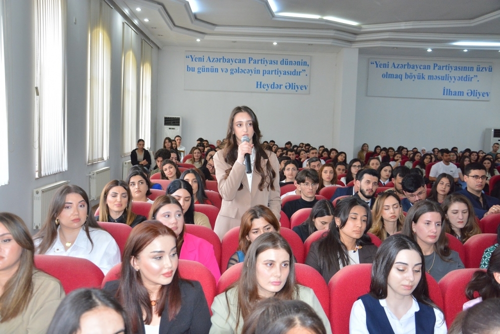 Çıxış edən YAP Mərkəzi Aparatının Gender siyasəti və gənclərlə iş şöbəsinin müdiri Zəkiyyə Musayeva bildirib ki, gənclər siyasəti Azərbaycanda dövlət siyasətinin prioritet istiqamətlərindən biridir. Bu siyasətin əsas məqsədi gənclərin hərtərəfli inkişafını təmin etmək, onları yüksək vətənpərvərlik ruhunda formalaşdırmaq, layiqli vətəndaş kimi yetişdirməkdən ibarətdir. Qeyd edib ki, xalqımız şanlı Zəfər qazanmaqla tarix yazıb: “Bu tarixi gələcək nəsillərə çatdırmalıyıq. Bunun üçün Vətəni sevmək, tariximizi dərindən öyrənmək lazımdır. Müstəqil dövlətimiz Ulu Öndər Heydər Əliyevin bizə əmanətidir və bu əmanəti hər zaman qorumalıyıq”.