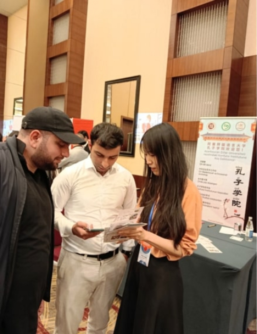 Konfutsi İnstitutunun stendində Çin dilinin tədrisində ən müasir texnologiyaların tətbiqi nümayiş olunub. İştirakçılar Konfutsi İnstitutunun maddi-texniki bazası və elmi tədqiqatları, həmçinin institutun nəşr etdiyi metodiki vəsaitlər və proqramlar, milli Çin dili dərslikləri ilə tanış olublar. Ümummilli Lider Heydər Əliyevin və Azərbaycan Prezidenti İlham Əliyevin Azərbaycan-Çin əlaqələrinin inkişafı istiqamətində fəaliyyətinə həsr olunmuş Çin dilində kitablar xüsusi maraq doğurub.