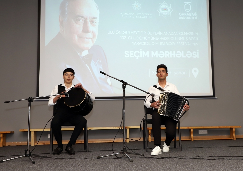 Azərbaycan Təhsil İşçiləri Azad Həmkarlar İttifaqı (ATİAHİ) Respublika Komitəsinin Ulu Öndər Heydər Əliyevin anadan olmasının 102-ci ildönümünə həsr olunmuş Qarabağ Universitetinin tələbə-gəncləri arasında keçirilən bədii yaradıcılıq müsabiqə-festivalının seçim turu Zəfər ruhunun sözə, musiqiyə, sənətə çevrildiyi məkanda - Qarabağ Universitetində uğurla başa çatıb.